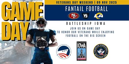 Veterans, families, and football fans are invited to gather, enjoy, and show appreciation for those who’ve served while cheering on your favorite team from the ship’s historic fantail. This is a free event open to all ages.